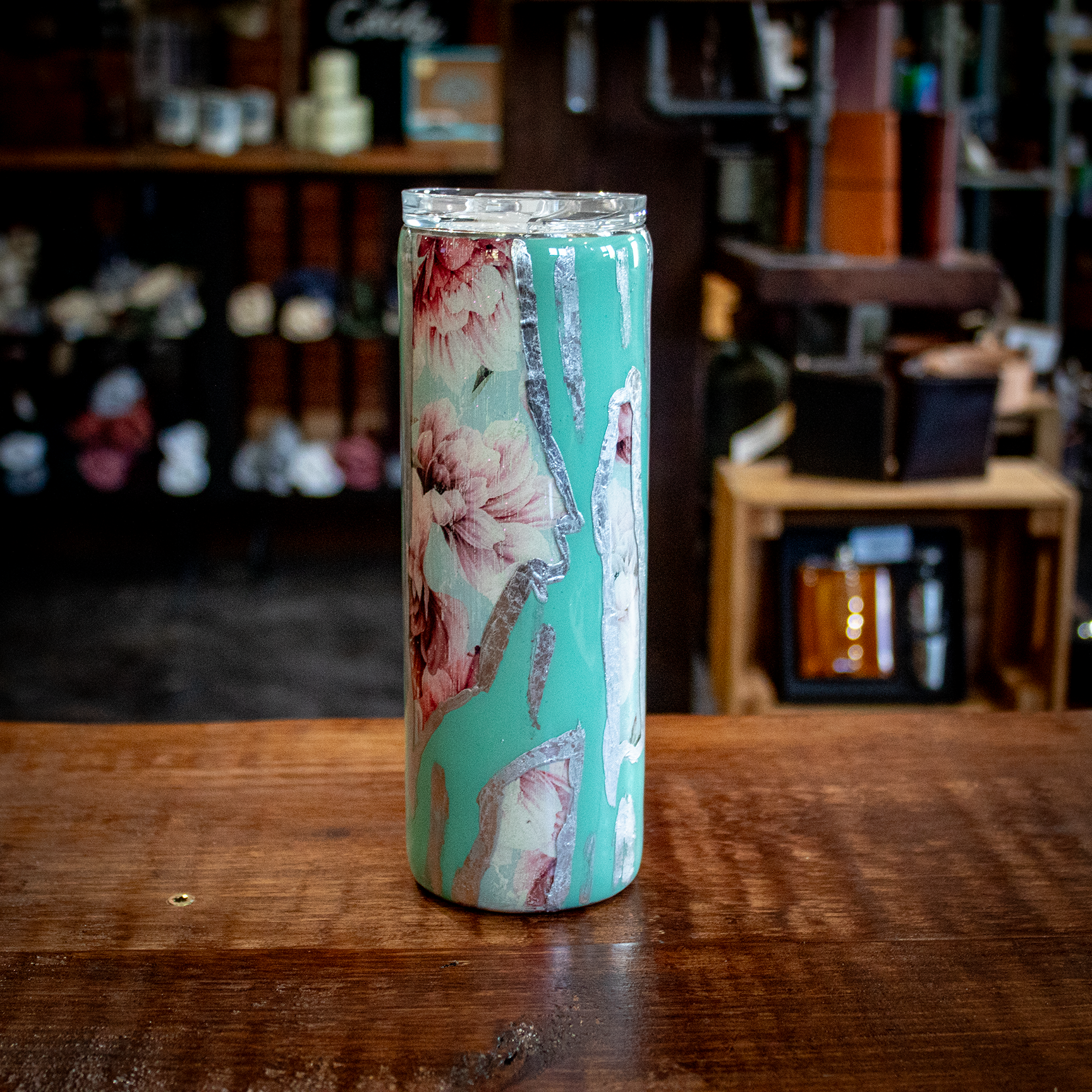 20 Oz Teal w/ Floral Peek-a-Boo