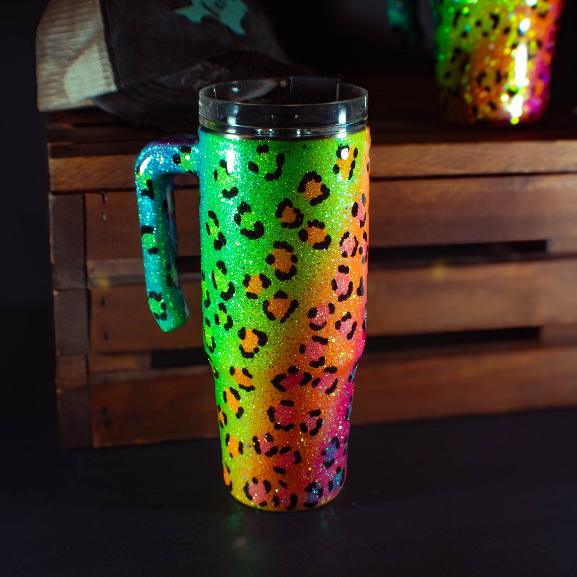 30 Oz Rainbow Leopard w/ Handle