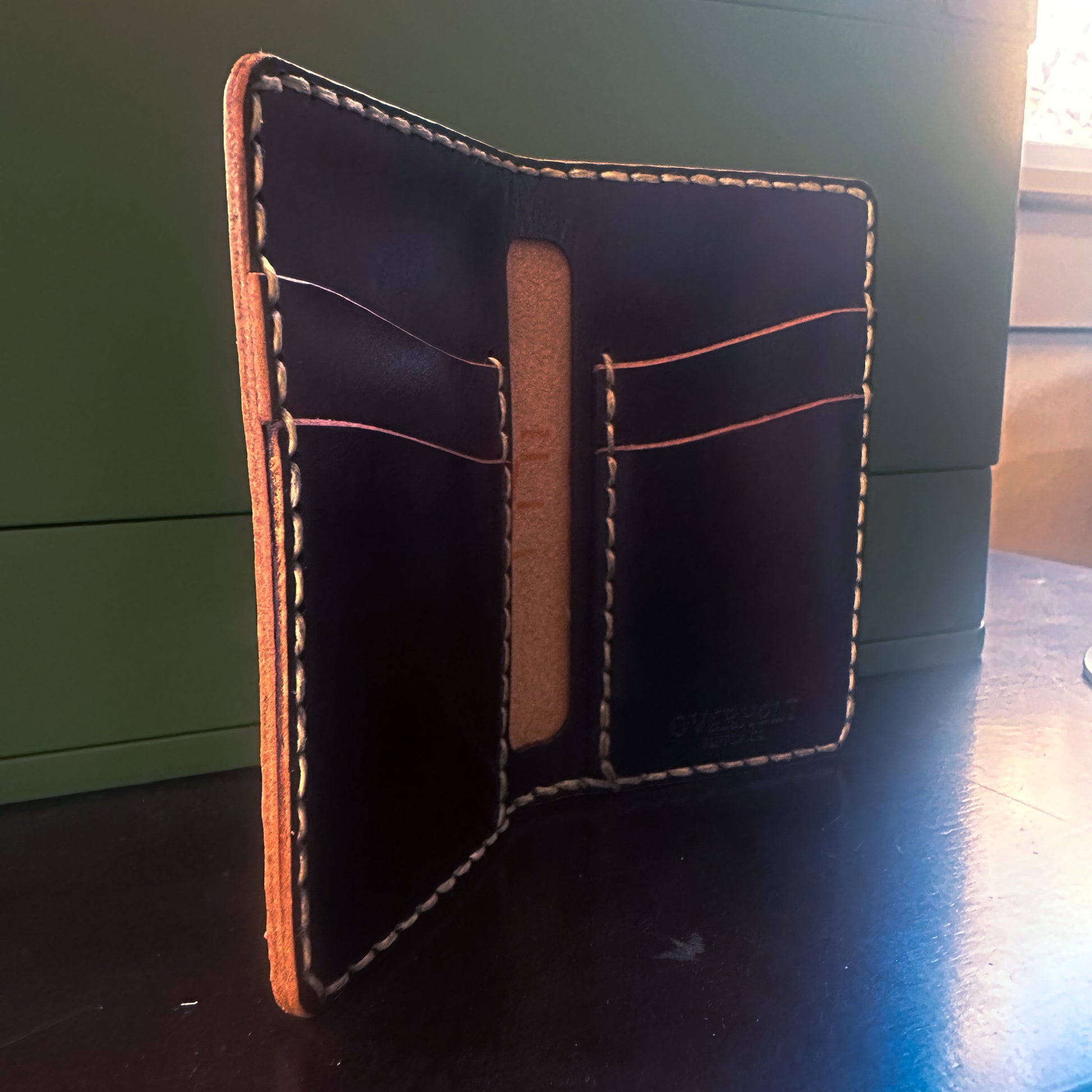 Premium Catalina Leather: Crafted from Catalina Double Shoulders, this wallet is made from veg-tanned, top-grain cowhide sourced from Mexico. The leather boasts a distinctive high-gloss finish, ensuring durability and a touch of sophistication.