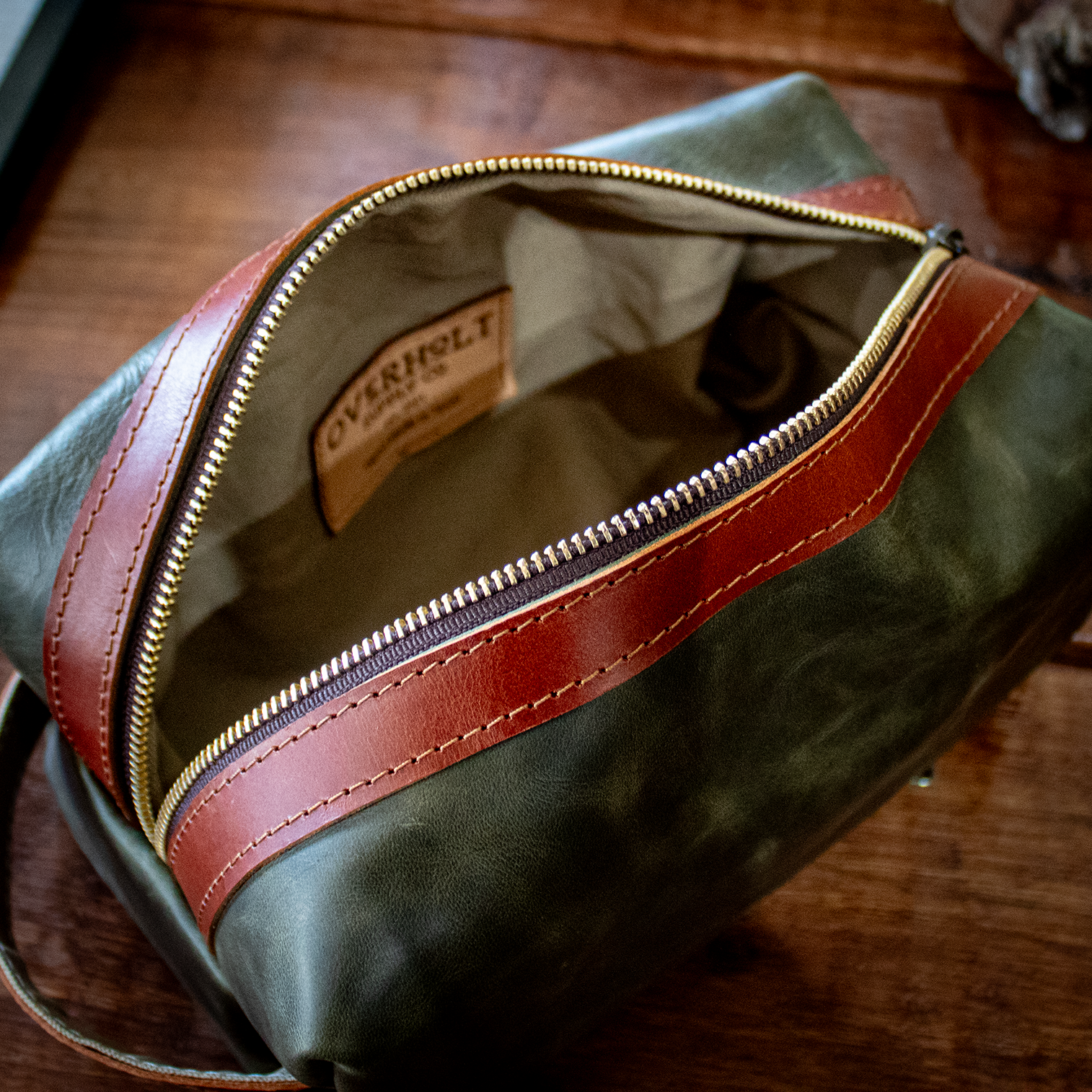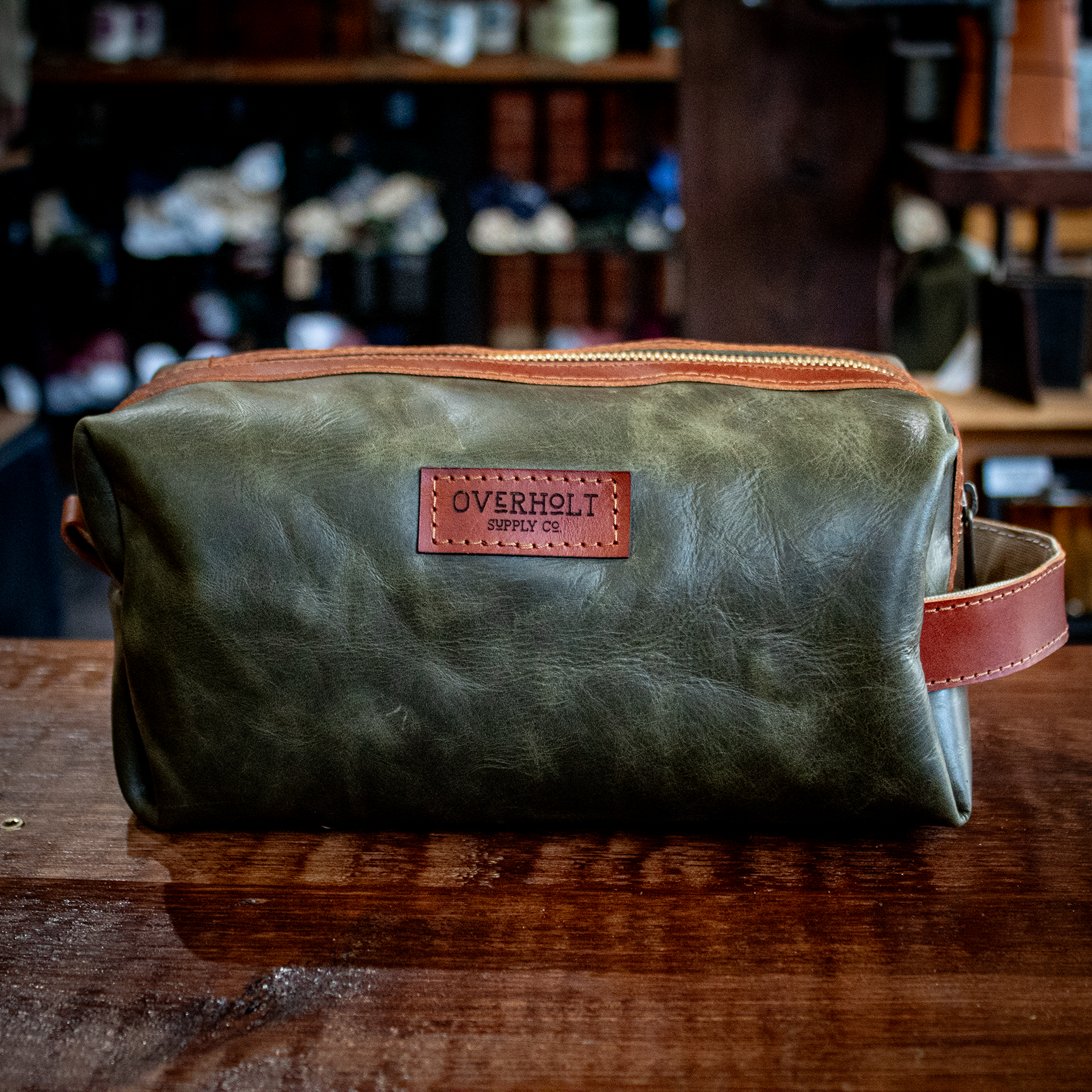 Crafted for the man on the go! Pack those important items in this Dopp Kit that will age beautifully over time. Made with Denver tanned pullup leather on the outside and rugged canvas on the inside this travel companion will stand the test of time.