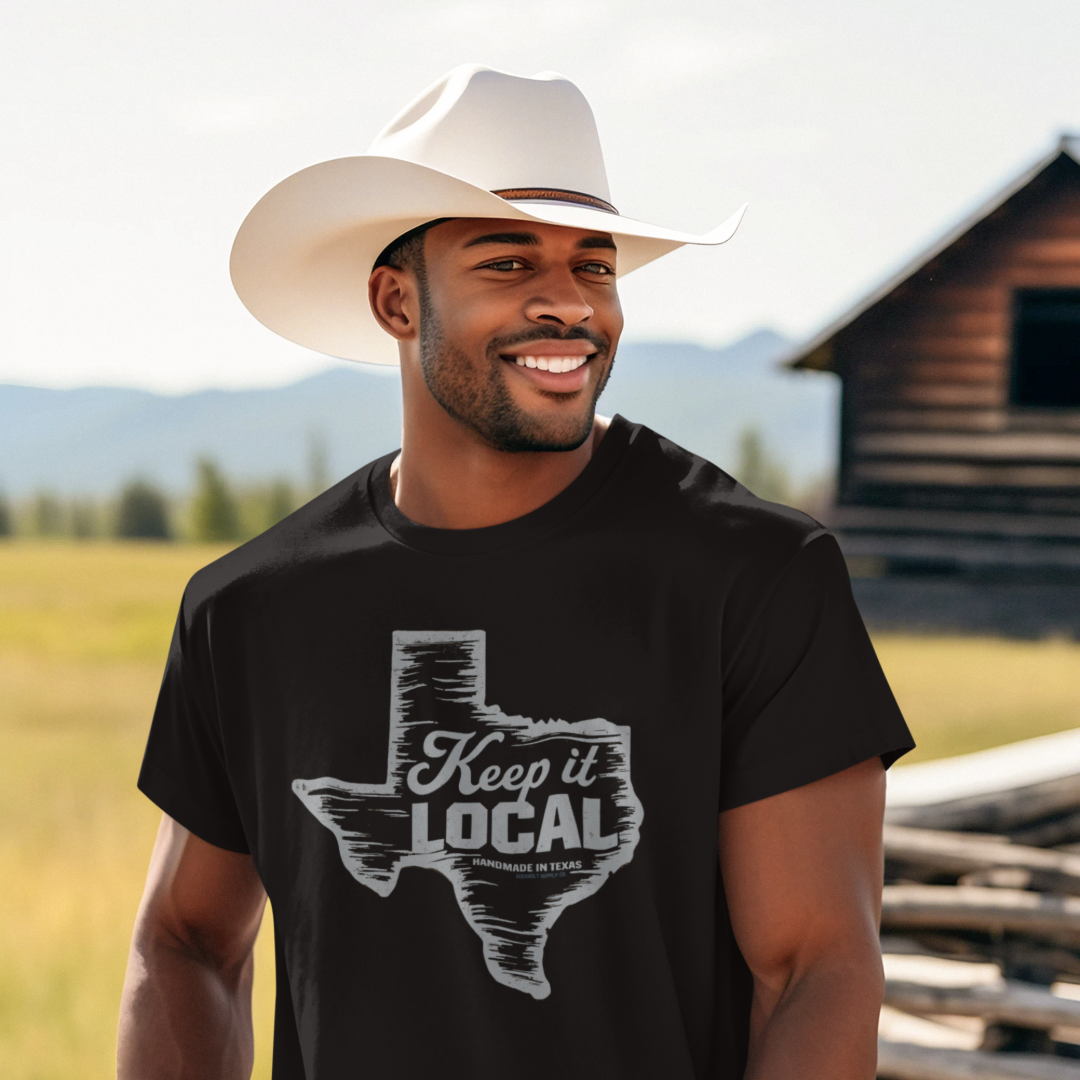 Celebrate local pride and craftsmanship with our "Keep It Local, Handmade in Texas" t-shirt. Featuring a bold, rustic design that embodies the Lone Star State's spirit, this tee is a testament to supporting small businesses and handmade goods. Crafted from ultra-soft, pre-shrunk ringspun cotton, it offers a perfect blend of comfort and durability. Whether you're repping Texas or embracing the handmade ethos, this shirt is a versatile wardrobe staple that pairs well with jeans or shorts for a casual, everyday look.