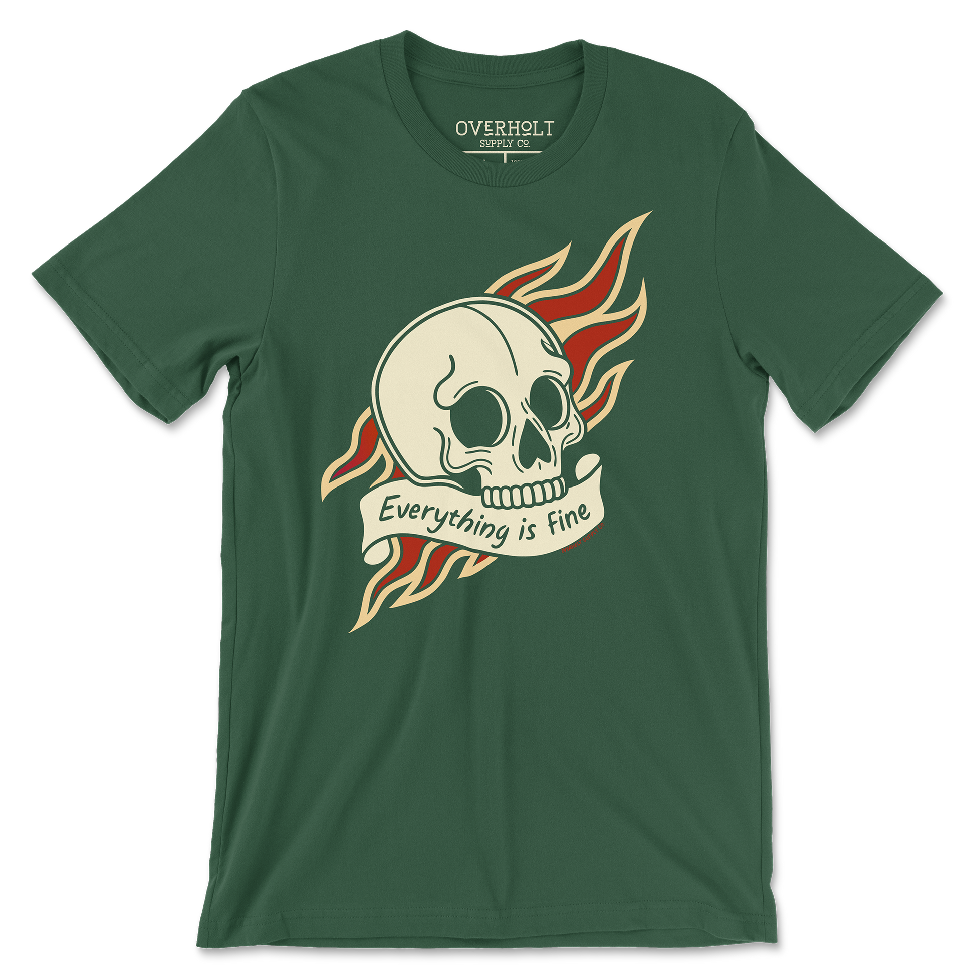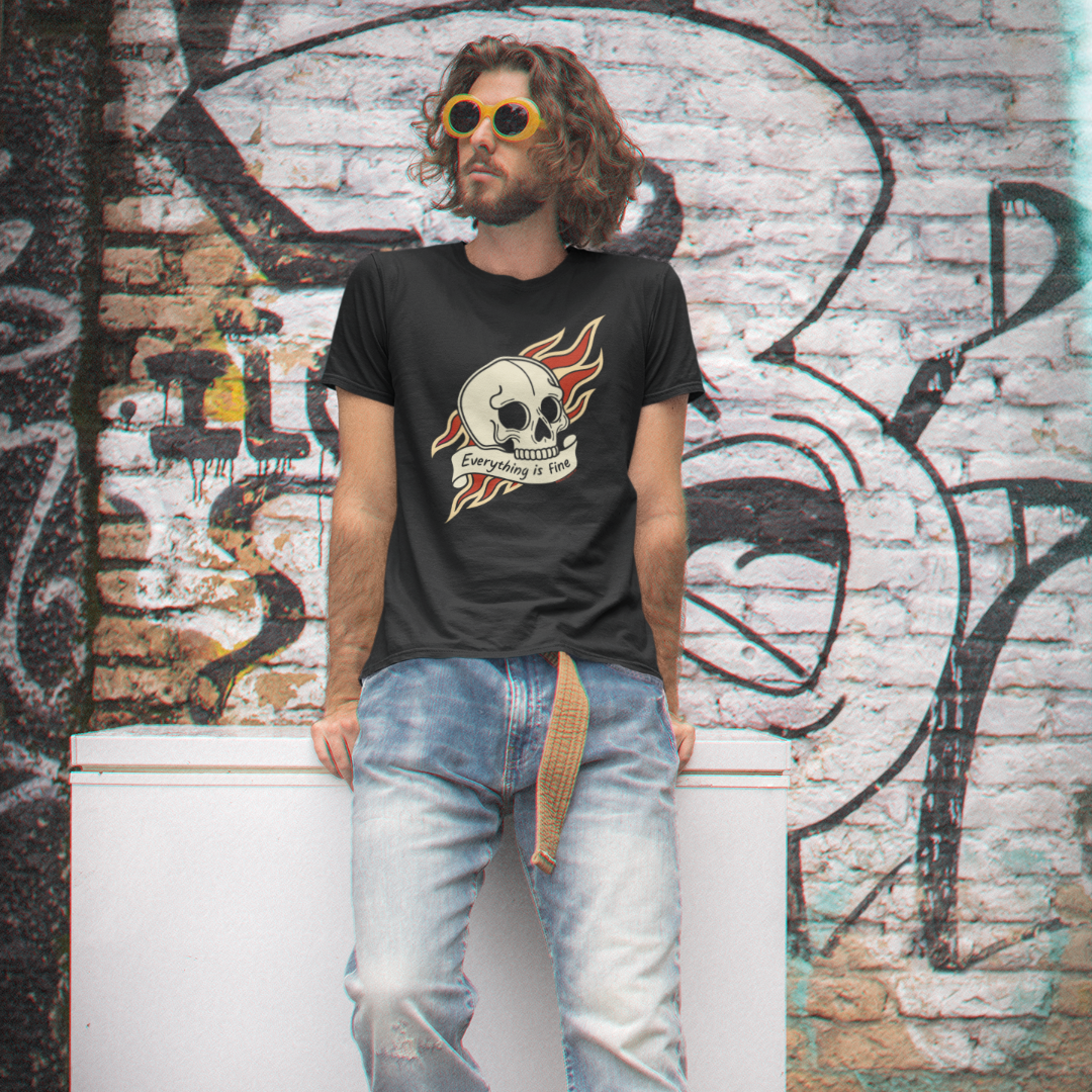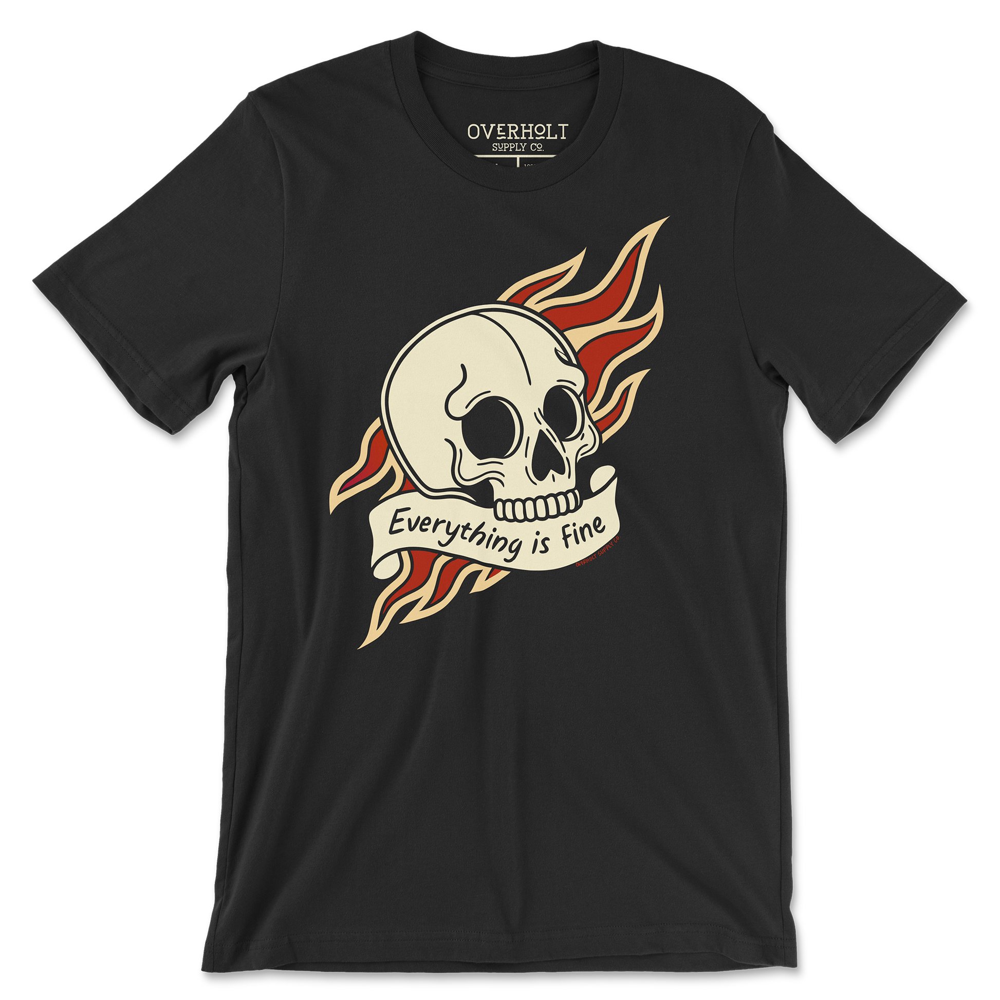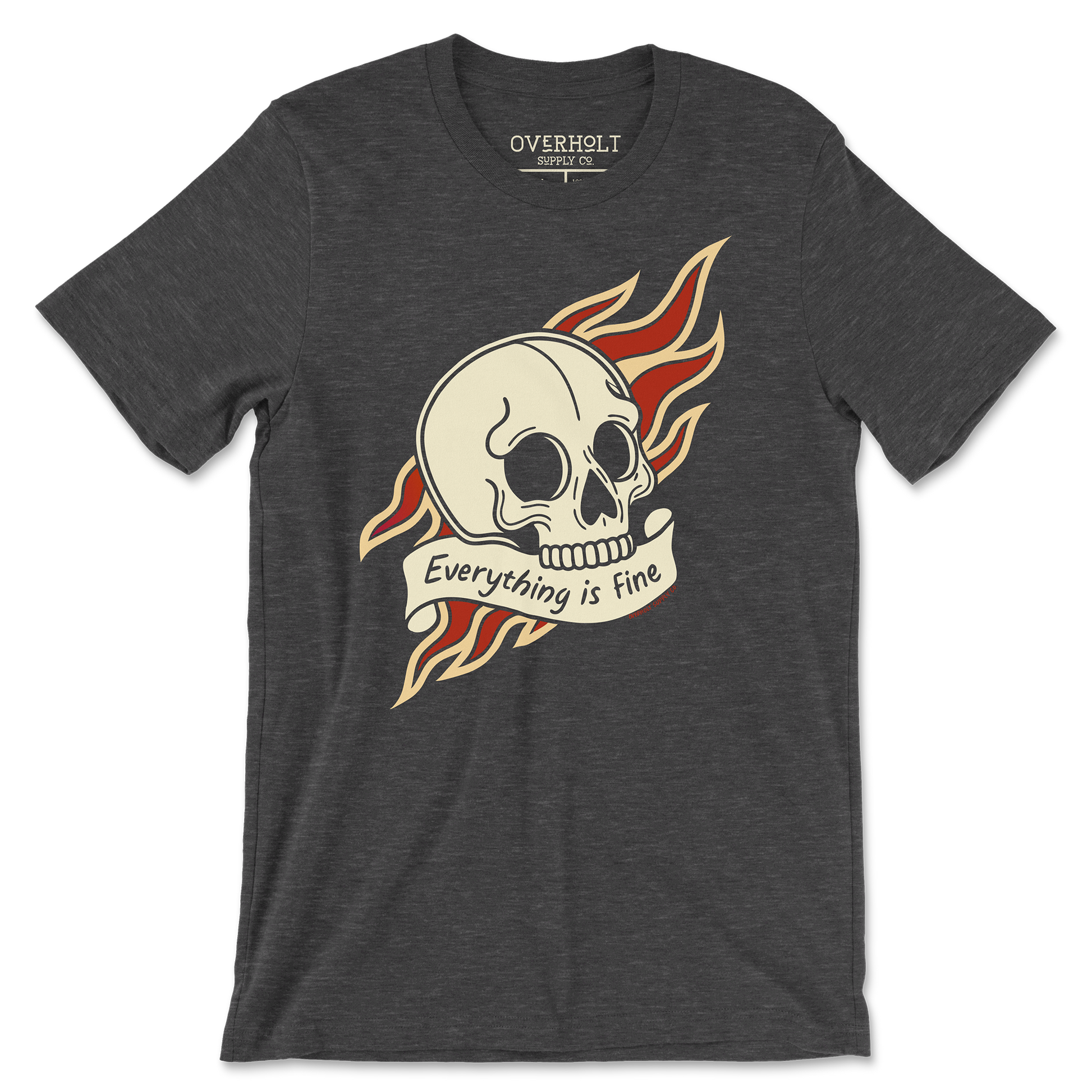 When life feels like a dumpster fire, let your style say it all. This hand-drawn design features a skull surrounded by flames, with a banner boldly proclaiming, "Everything is fine." Made from ultra-soft, pre-shrunk ringspun cotton, this tee is as comfortable as it is unapologetic. Perfect for those who embrace chaos with a smile, it’s a statement piece for any wardrobe.