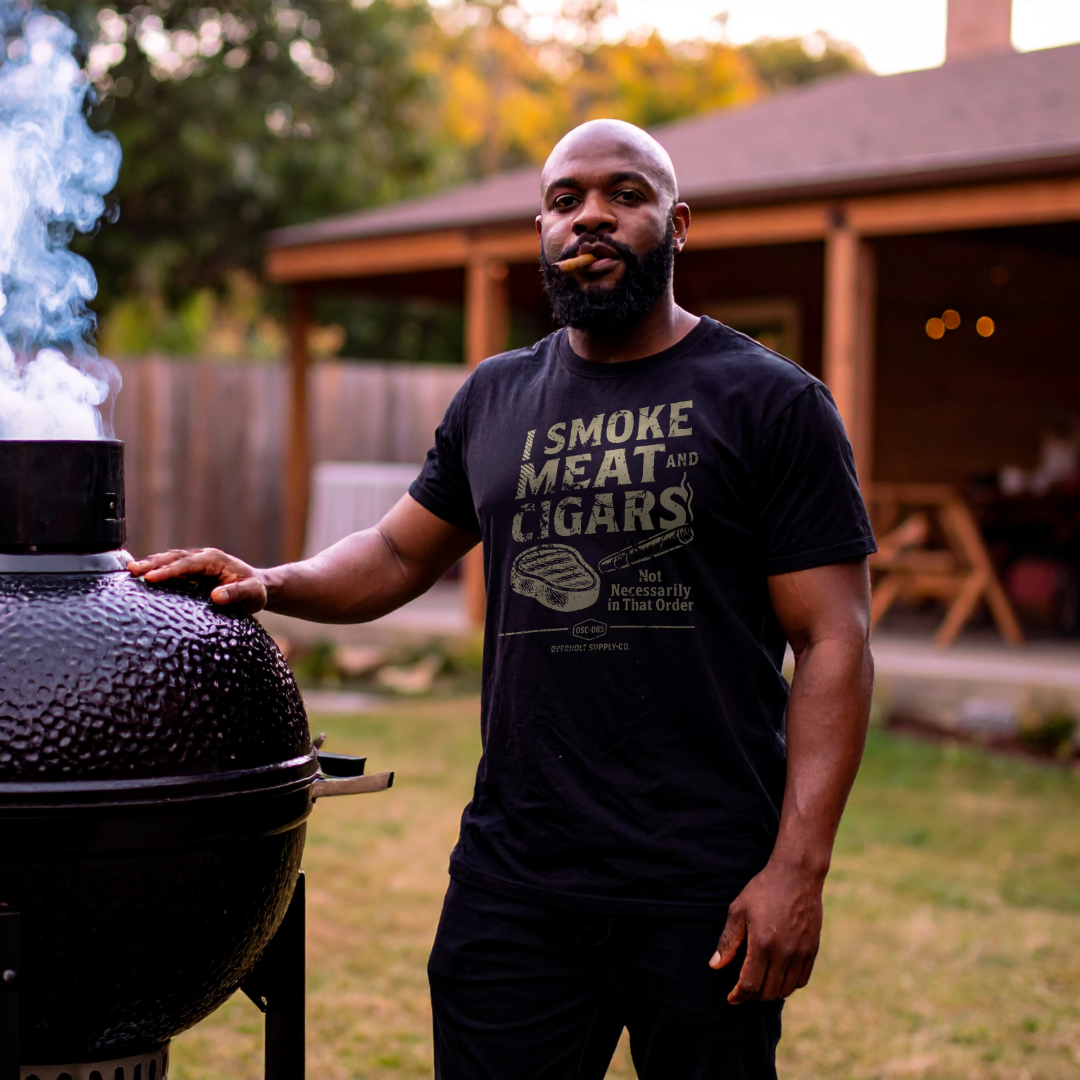 For the man who knows his way around a smoker and a humidor, this shirt says what you’re already thinking — just with more grit.