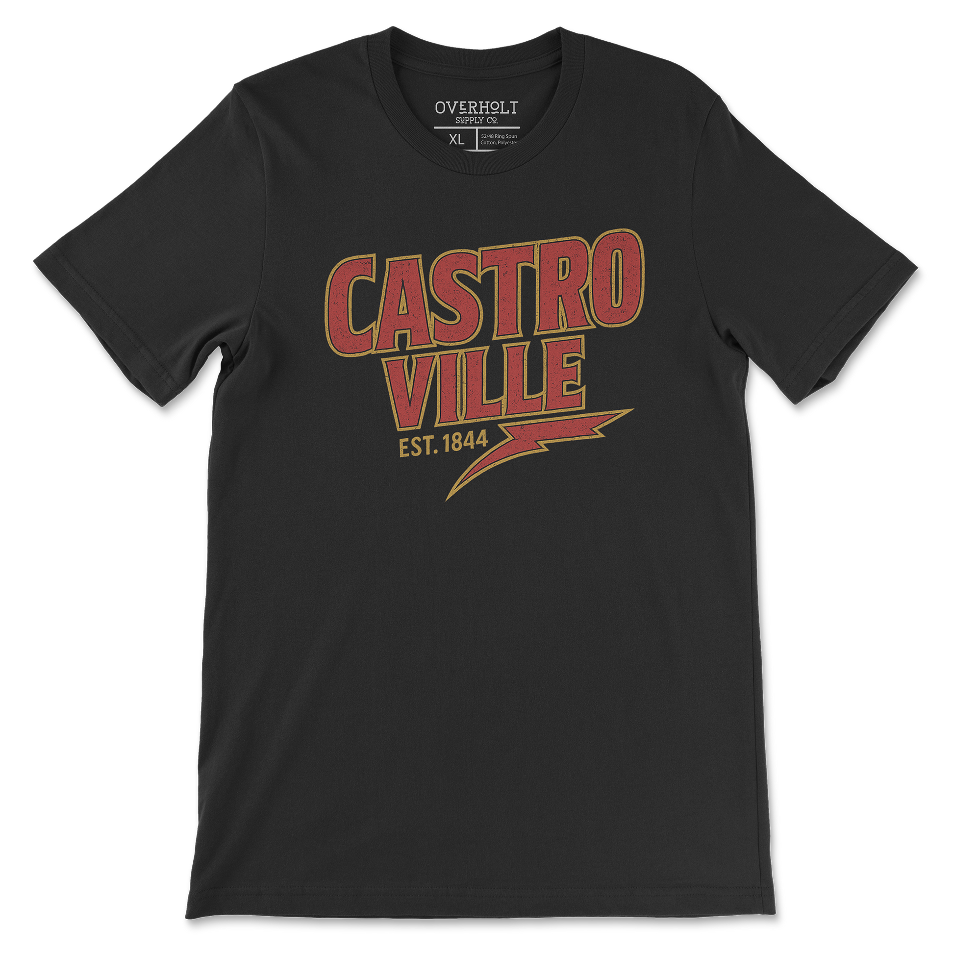 The OSC-096 Castroville Lightning Tee throws it back with vintage energy and a gritty bolt of Texas pride. Featuring bold distressed lettering and a lightning strike under “CASTROVILLE EST. 1844,” this one’s built for locals, loyalists, and anyone who knows where they come from.