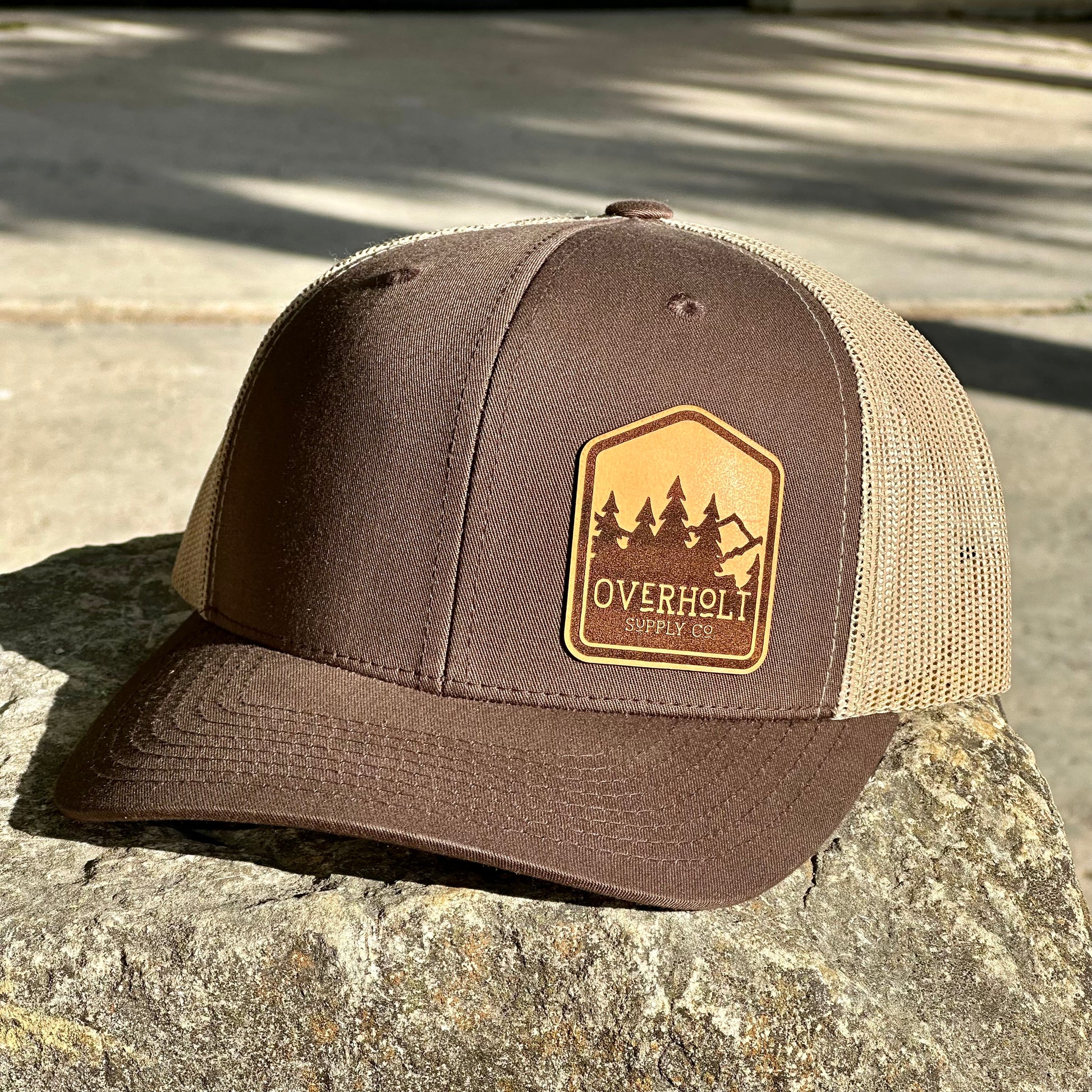 Rep the brand that you love with this OSC logo hat. Our popular Brown and Khaki snap back paired with leather? You can't get much better than that!