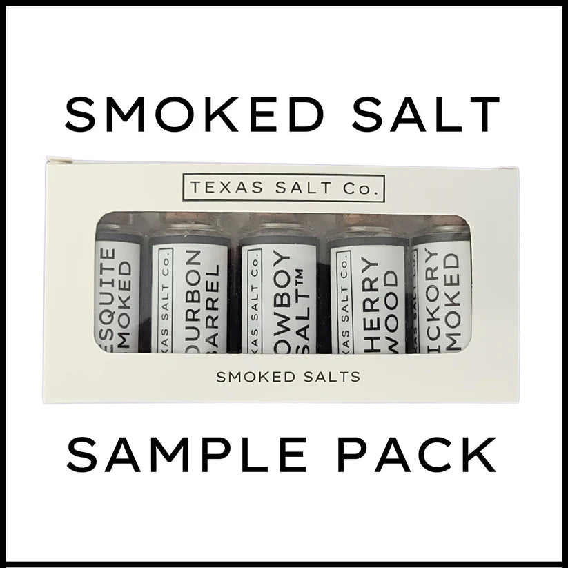 This 5-piece Sampler Set contains Cowboy Salt, Smoked Bourbon Barrel, Smoked Cherrywood, Smoked Hickory, and Smoked Mesquite and is available in limited quantities. Try them all in one box.